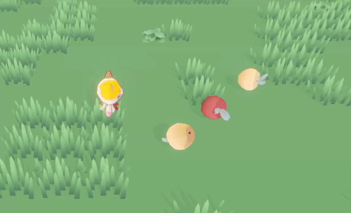 Putting it all together, I made a character controller that lets me interact with the environment to get the scale of things. Although the main player character is a placeholder and clearly-not-a-frog looking, I implemented a mechanic where you can grab things in the environment to fling them back to you. The "tongue" is currently a sphere for debug purposes.